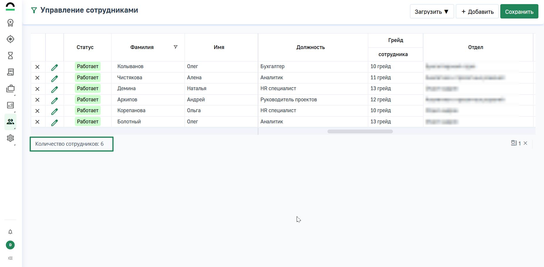После таблицы вы можете увидеть общее число сотрудников, включённых в список.
