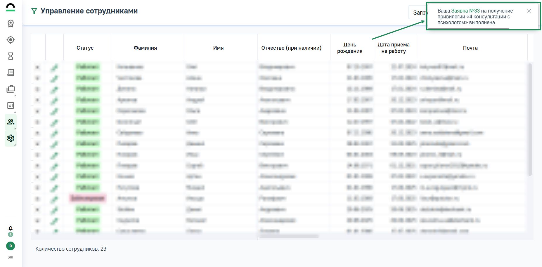 Системные уведомления - уведомления, которые отображаются в правом верхнем углу и сообщают о начислении и о ведении заявок.