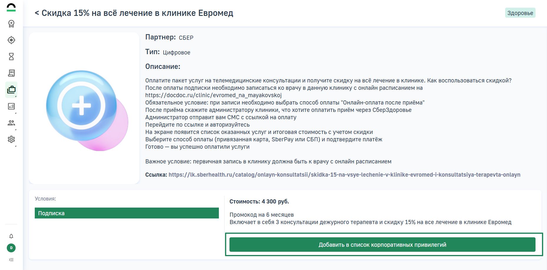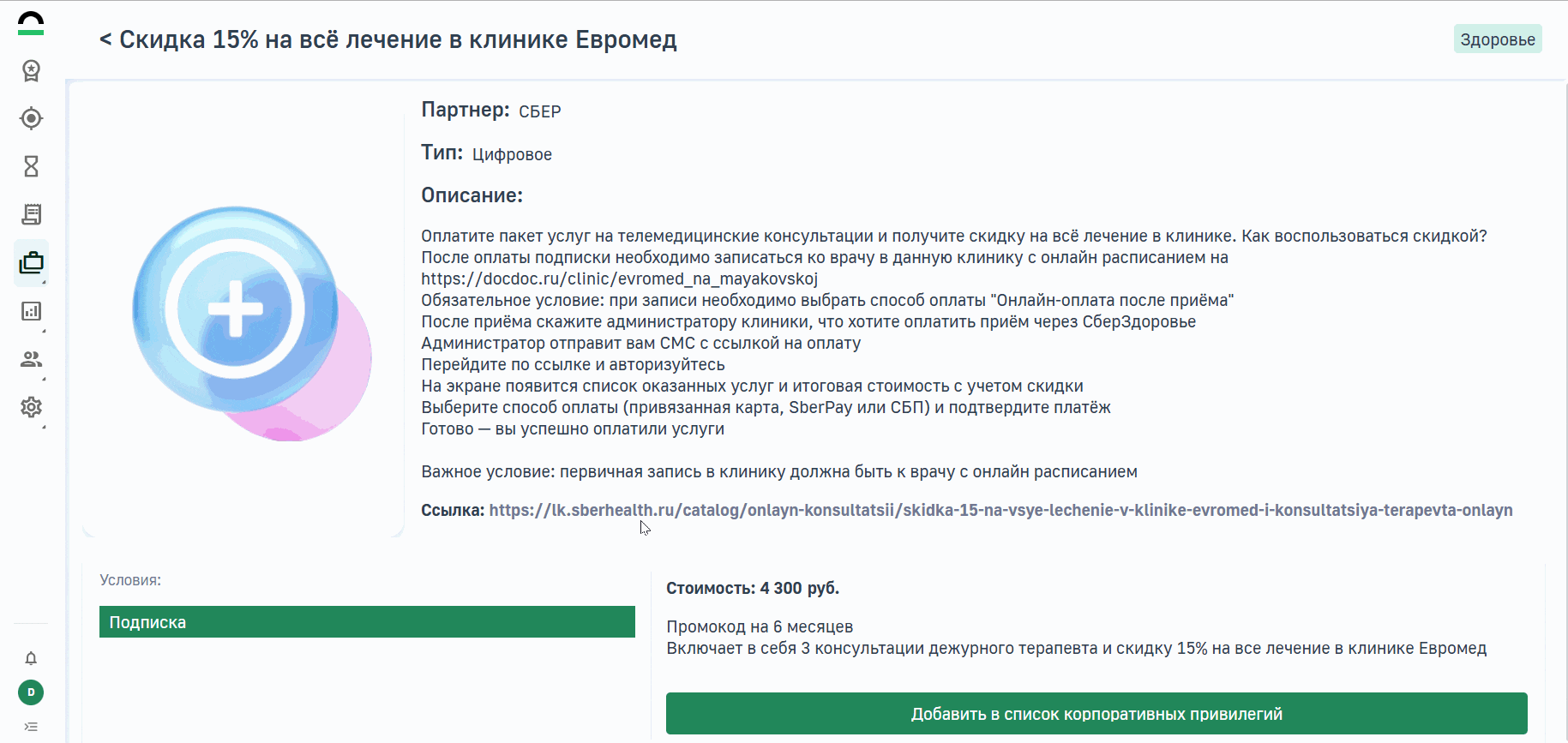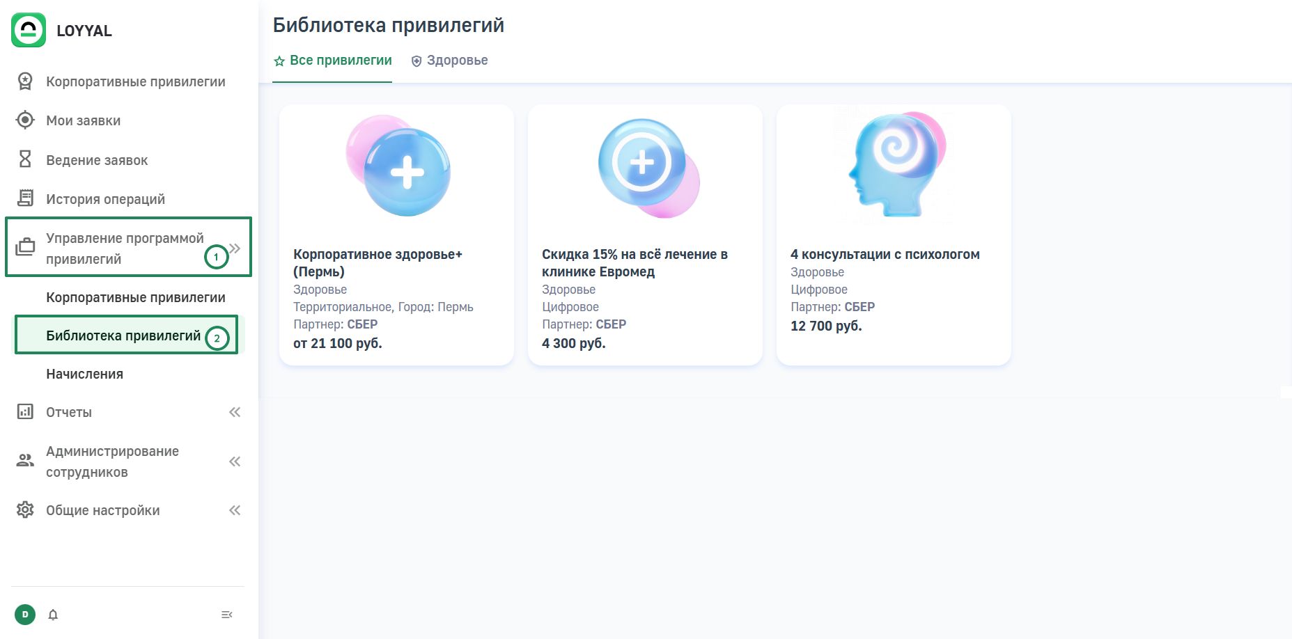 Библиотека привилегий - это список готовых привилегий, которые вы можете добавить в список корпоративных привилегий. Привилегии из библиотеки уже имеют свои тарифы, условия, описания и стоимость.