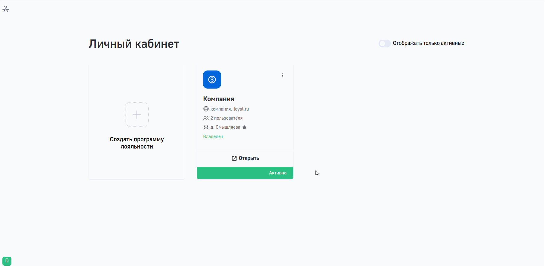 - Войдите в личный кабинет LOYYAL: admin.loyyal.ru/cabinet.